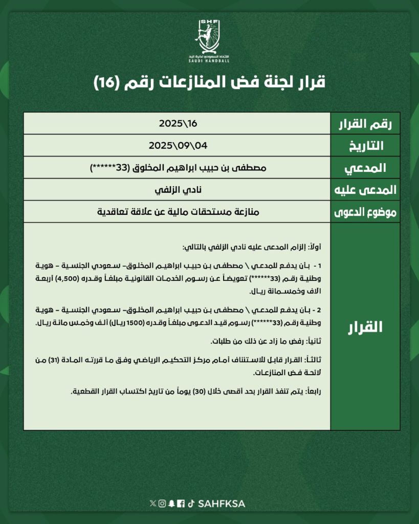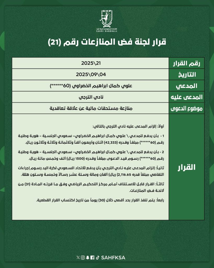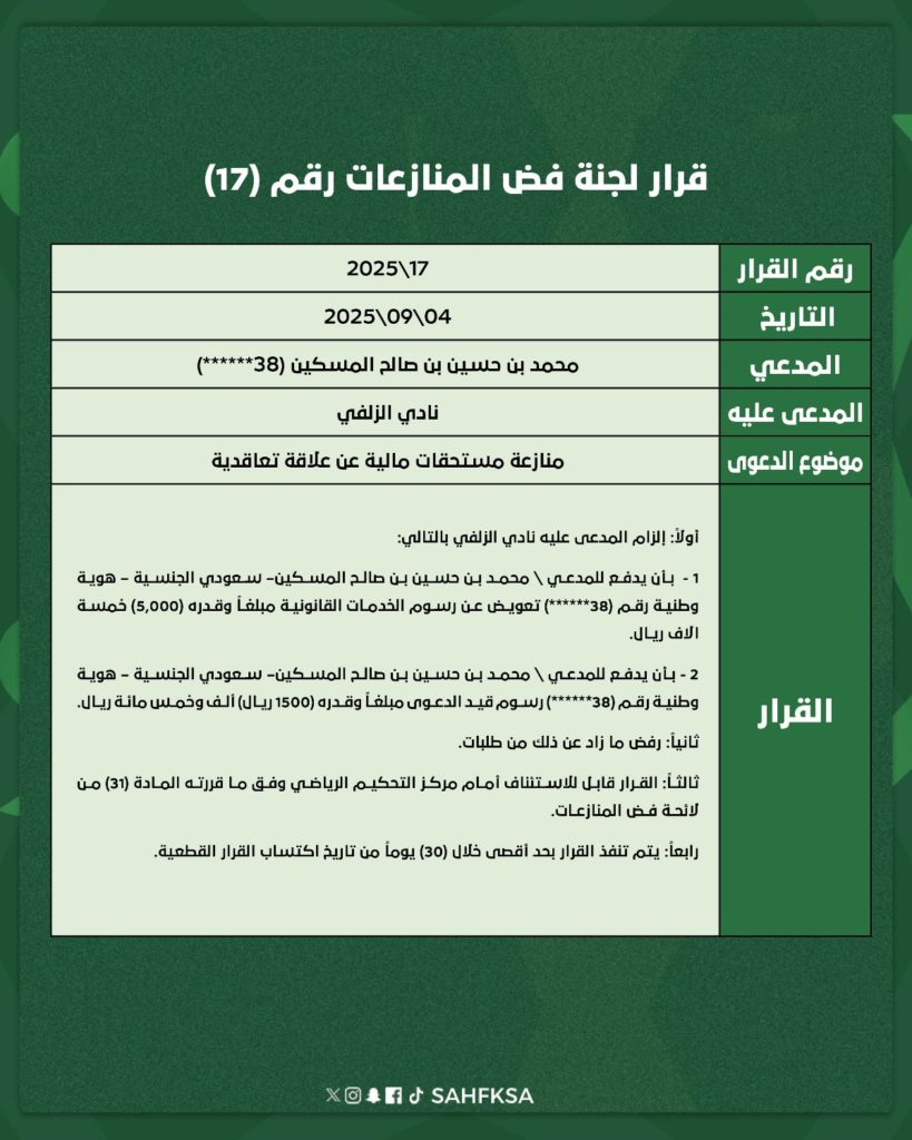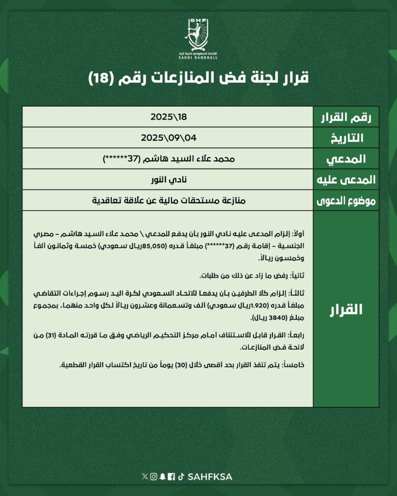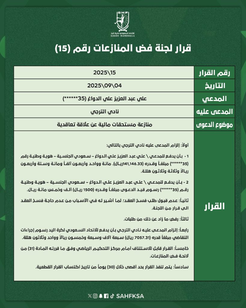 قرارات لجنة فض المنازعات (15 | 16 | 17 | 18 | 19 | 20 | 21)