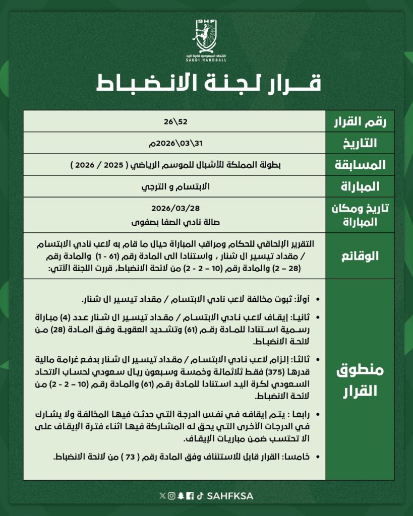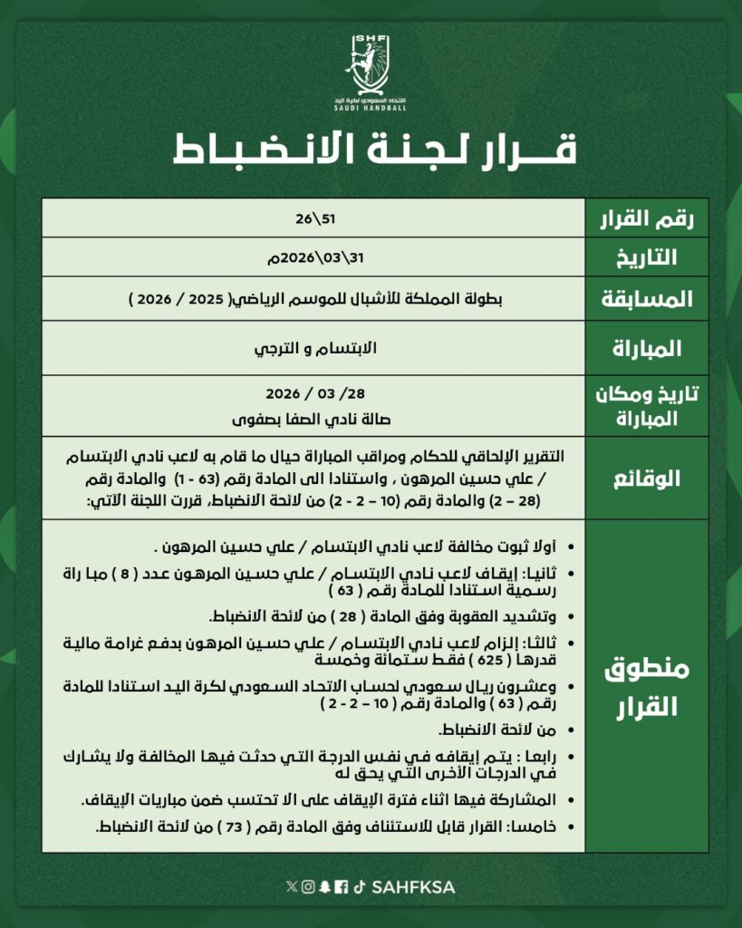 قرارات لجنة الأنضباط (49 | 50 | 51 | 52 | 53)